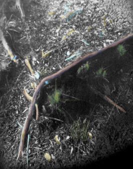 Väylän leveydestä Sittis päätteli, että älylliset (siis me) ovat hyvin kookkaita, noin 20 kertaa Sittiksen kokoisia kaksijalkaisia (Sittis kuvasi lenkkitossun painallukset). Juuri sillä kohtaa kuntopolkua ei ollut valaisua, joten Sittikseltä jäi huomaamatta sähkön läsnäolo teknologiassamme. Hieman pettyneenä Sittis päätti palata "kotoonsa" takaisin. "Ei hyvältä näytä. Minä jo ehdin toivoa, että täältä löytyisi korkeampaa tekniikkaa - vaikkapa varaosia." Niin Sittis tallusti alakuloisena läpi aamukostean metsän. | ![]() |